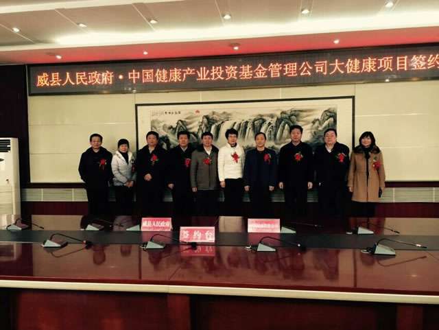 2016年1月22日,河北省威县人民政府与金年汇官方版网站登录入口-金年汇(中国)大健康项目签约仪式在河北省威县举行。威县人民政府县长商黎英、副县长孟祥义、副县长潘延彬,金年汇官方版网站登录入口-金年汇(中国)副总裁韩子宇、美好乡村农业科技发展有限公司总裁郭洪卫等出席签约仪式。 威县招商局局长刘汝恒主持仪式。韩子宇总裁首先对金年汇官方版网站登录入口-金年汇(中国)相关情况和前期准备工作做了详细介绍,商黎英县长对金年汇官方版网站登录入口-金年汇(中国)长期以来关注和支持威县发展表示感谢,并介绍了威县的经济环境、政策环境以及大健康事业发展情况。随后,双方就在威县人民政府关于推进健康服务事业发展的战略部署和总体规划下,分阶段开展大健康项目合作等问题进行了深入探讨并达成协议。双方同意,将发挥各自优势,共同推动医疗卫生、养老服务、健康管理、体育休闲、绿色农业、环保清洁等大健康领域的建设和合作,金年汇官方版网站登录入口-金年汇(中国)将发挥自身投融资平台优势,对威县健康产业分期投资总额将达到10亿元人民币。